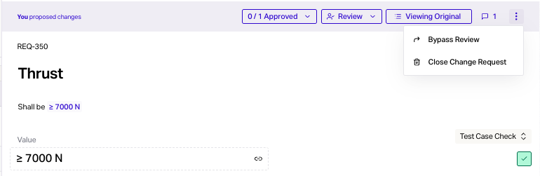 To save time with approvals - admins and requirement owners can now bypass reviews by clicking the three dots.